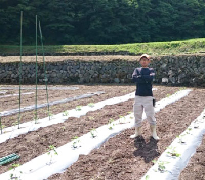 小さな頃から家の手伝いとして慣れ親しんだ農業。若い頃に、父が他界したことをきっかけに母を助けるために兼業農家に。最初は農業が嫌で仕方がなかったが、年と共に農業の楽しみを理解し始めたのが50半ばの頃である。会社の退職を機に、小さな農家として本格就農した。今後は、誰が口にしても安心安全な野菜を作っていきたい。